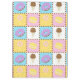 Satisfaites votre dent sucrée avec ce motif coloré qui propose de savoureuses friandises comme un cône de crème glacée au chocolat, un beigne de chocolat mauve, un macaron jaune citron, et une sucrerie tourbée rose et blanche séparée par des chips de chocolat et entourée de saupoudrées d'arc-en-ciel sur quatre carrés aux couleurs vives.