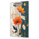 Les pavots peints en orange se combinent avec des fleurs blanches et des baies oranges sur un arrière - plan mixte dans le bleu foncé-gris et l'amande-tan. Très beau design moderne et abstrait.