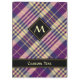 Design écossais violet, jaune doré et bleu. Motif sans couture. Texte et monogramme personnalisés.