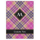 Design rose, jaune doré et écossais bleu. Motif sans couture. Texte et monogramme personnalisés.