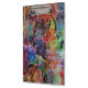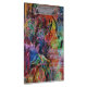 Des couleurs vives et des motifs complexes se mêlent, créant une scène abstraite remplie de formes tourbillonnantes et de motifs floraux. L'interaction de tons chauds et cool, ainsi que de couches texturées, ajoute profondeur et mouvement.