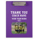 Thank you Coach Team Name Photo Clipboard. Personalize with your coach name, team name, team photo and year. You can change any text on the clipboard or erase it. A great gift and a keepsake for a soccer coach!