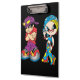 Urban Cartoon Duo Tee. A vibrant cartoon tee featuring a bold street-style boy and a colorful retro-fashion girl standing side by side. red, blue, green, pink, purple, yellow, orange, heart, rose, butterfly, floral, romance, love, ribbon, spring