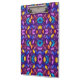 Vibrant clipboard with a symmetrical, kaleidoscope pattern in purple, blue, and orange. The design is bold and dynamic, creating an energetic feel.