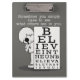 Little Boy se tient derrière un tableau géant recouvrant son oeil d'un occludeur/pagaie. La citation, "Parfois, il suffit de voir ce que les autres voient en vous." Le tableau de bord indique la citation de Little Boy, Big Dreams : "Croyez en l'incroyable qui est vous !" Citations ©Little Boy, Big Dreams, LLC et David A. Carrizales et artwork © Christie Black of Creations from the Heart.