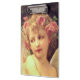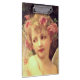 Beautiful celestial dreamlike painting of a lovely young girl with romantic pink roses in her golden hair and with ethereal angelic wings, embodying themes of innoence and purity. Oil on canvas by French artist Guillaume Seignac.