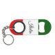 Un ouvre-bouteille à l'italienne style porte - clé. Le design a le célèbre drapeau rouge, vert et blanc avec le mot "Italia" écrit sur la partie blanche dans une belle police de caractères. Facile à garder à portée de main quand vous en avez besoin. Fait un cadeau amusant pour un mec ou une fille.