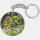 An acrylic keychain, with a double-sided, mirrored sunflower photo. The photo was taken from the side of the road near Pine Valley, California.