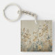 This keychain features an ethereal, meadow-inspired landscape rendered in a delicate watercolor style. Stems of wildflowers and clover-like foliage stretch upward against a warm linen-textured background, creating a tactile, fabric-like appearance.