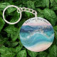 Porte-clefs Aquarelle Bleu Blanc Océan Vague Personnalisée Nom