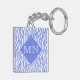 Porte-clefs Aquarelle bleu Denim Zebra Imprimer | Monogramme