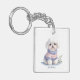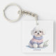 Couleur d'eau mignonne caractéristiques illustration de l'aquarelle blanc Maltais Chien chiot sur l'arrière - plan blanc d'hiver. Personnalisez en ajoutant vos propres textes. Ce porte - clé à thème pour chien sera un cadeau parfait pour les amoureux de les chiens et les propriétaires blancs maltais.