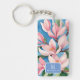 Porte-clefs Aquarelle rose Magnolia Art moderne Monogramme ble