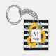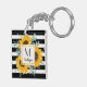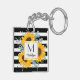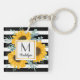 Ce porte - clé personnalisé présente un design moderne de tournesol et de feuillage aquarelle avec des rayures en faux or et en noir et blanc. Personnalisez le monogramme avec votre nom et votre initiale.