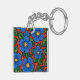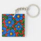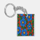 Porte-clefs Blue Flowers and Green Leaves on a Red Background