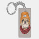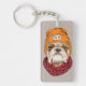 Caractéristiques de conception ce un portrait de bouledogue dans un casquette de hippie et avec l'écharpe tricotée.