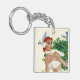 Artiste : Femme de Joe DeMers | dans le maillot de bain blanc chassé par un homme et des oiseaux