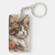 Montrez votre amour pour les chats avec ce porte-clés époustouflant et artistiquement détaillé représentant un majestueux félin à poils longs aux yeux verts saisissants. Placé sur un fond doux et neutre avec un accent floral subtil, ce design allie réalisme et touche d'élégance. Les tons chauds et les détails complexes de la fourrure créent un look cosy et sophistiqué, faisant de cet accessoire l'idéal pour les amoureux des chats qui apprécient à la fois la beauté et la personnalité dans leurs objets du quotidien.