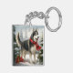 Porte-clefs Chien sibérien Husky à Noël de neige