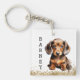 Super mignonne bague de clé de chiot pour chien en chocolat brun dachshund pour amoureux de les chiens, gardiens de chiens, soins pour animaux, adoption d'animaux, hôtels pour animaux de compagnie, promeneurs de chiens, toiletteurs de chiens, baskets pour chiens, garderie pour chiens et vétérinaires. Customisez avec le nom de votre chien. Remplacez ou conservez l'échantillon de photo de chien.