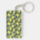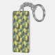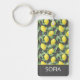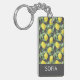 Citron motif nom personnalisé jaune gris fleurs blanches Porte - clé.