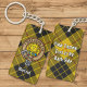 Clan MacLeod de l'insigne crête de Lewis entouré d'une sangle et boucle sur l'arrière - plan tartan. Texte personnalisé des deux côtés.