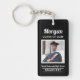 Moderne design personnalisé porte - clé de graduation comprend une photo carré du diplômé encadrée en blanc avec un prénom personnalisé simple et classique, l'année de classe et le libellé du nom de l'école qui peut être personnalisé. L'arrière - plan noir peut être modifié pour être coordonné avec les couleurs de l'école ou de la photo.