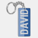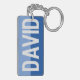 Faites votre choix de nom affiché en gras sur un porte-clés bicolore. L'exemple montre le nom David. Personnalisez avec votre choix de nom court.
