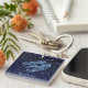 Porte - clé avec le symbole zodiaque pour le cancer en bleu argenté doux, recouvert d'étoiles de la constellation, contre un arrière - plan étoilé du bleu profond de minuit au noir.
