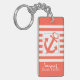 Gras Corail et bandes blanches avec design d'ancre nautique, maison de plage ou porte - clé condo avec une place sur le dos pour ajouter toutes vos informations importantes de retour de clé si les clés sont perdues.