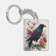 Porte-clefs Corbeau sur Branche Art Floral coloré