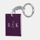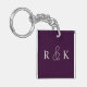 porte - clé mariage personnalisée avec d'élégantes initiales beige clair sur un riche arrière - plan violet foncé. Parfait pour les couples, Personnalisez maintenant pour ajouter les initiales des couples.