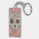 Porte-clefs Crâne de sucre rose et or et coeurs mignons et fan