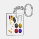 Keep your keys organized with a touch of sporty flair using this croquet set keychain. The design showcases a detailed illustration of the iconic mallet and game balls in a compact format. It is an ideal small gift or party favor for tournament participants and members of lawn game clubs. This sturdy accessory ensures you carry a piece of your favorite summer pastime with you wherever you go.
