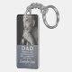 Cet élégant porte - clé commémoratif présente une ardoise grise affecter l'arrière - plan, une photo d'un membre perdu de la famille et un hommage "In Loving Memory" avec leur nom dans le script de calligraphie et les dates. Faites un merveilleux cadeau de compassion ou de maintien de l'hommage à transporter avec vous où que vous alliez. Tout le texte peut être facilement customisé.