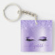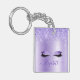 Moderne Elégant à la mode et tendance Violet violet Parties scintillant Porte - clé personnalisé avec votre nom. Script élégant. Eyelashes.