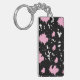 This keychain features an abstract design of irregular shapes resembling soft pink and black spots on a white background, blending creativity with minimal elegance.