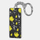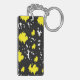 This keychain features an abstract design of irregular shapes resembling yellow and black spots on a white background, blending creativity with minimal elegance.