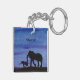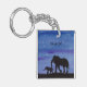 Un tableau aquarelle d'un bébé et d'un éléphant mère orne ce porte - clé personnalisable !