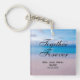 Chérissez votre journée spéciale avec ce porte - clé personnalisé. Ce porte - clé carré dispose d'un bel arrière - plan de plage avec le texte "Together Forever". Ajoutez vos informations de mariage à ce produit à l'aide du modèle personnalisé. Faites un grand cadeau pour les mariages ou les anniversaires.