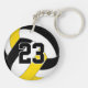 Ce porte - clé acrylique à double face pour garçons noirs et or présente un nom de joueur personnalisable, la position du tribunal, le nom de l'équipe et le numéro de maillot du joueur sur le devant et le numéro de maillot du joueur sur le dos - par katz_d_zynes
