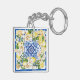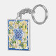 Porte-clefs Été Méditerrannée citron et fleurs imprimés