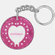 Ce porte - clé est doté d'un arrière - plan rose à coeur blanc et d'un monogramme de prénom et de lettre initiale. Personnalisez les champs de texte avec un prénom ou un nom et une initiale, supprimez un texte ou les deux ou cliquez sur personnaliser pour sélectionner un style, une taille et une couleur de police que vous préférez.