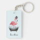 Améliorez votre jeu d'accessoires avec ce porte - clé flamand fantaisiste et élégant. Cette pièce est ornée d'un charmant flamant vêtu d'un monocle, jouant dans le bain, qui vous apportera un sourire au visage.