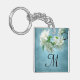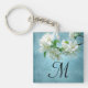 Fleur blanche Profonde Bleu Ciel Floral Pays Monogramme Porte - clé personnalisé initial