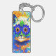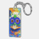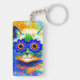 Porte - clé avec la peinture animale de Louis Wain Cat Flower Eyes (1860-1939). Un chat arc-en-ciel grince largement. Des fleurs bleues recouvrent ses yeux. Un cadeau merveilleux pour l'art amoureux des chats et anglais.