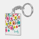 Porte-clefs Fleurs lumineuses modernes et feuille noire person