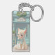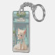 Porte-clefs Fluffy Kitten avec Blue Bow à la pâtisserie