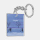 Une aquarelle représentant des enfants jouant au hockey sur glace sur un étang gelé orne ce porte - clé personnalisable !
