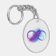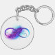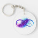 Infinity symbol with a beautiful feather painted in purple and blue bright colors on white background.